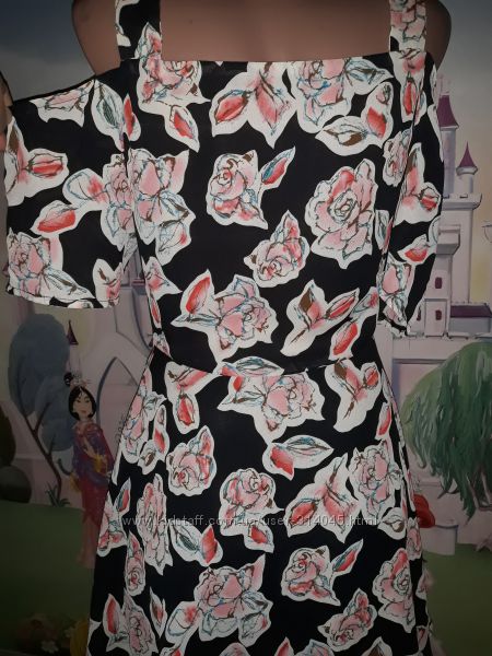 Чудное,лёгкое платье-сарафан в розы и открытыми плечамиот Rock Candy р.М-S