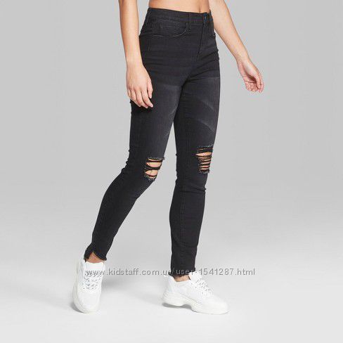 Джинсы Skinny с высокой посадкой от Wild Fable. Джинсы черного цвета с дырками на коленях и потертостями спереди, джинсы с рваными краями. Очень эластичные джинсы с удобной посадкой. Материалы: 49% хлопок, 30% вискоза, 20% полиэстер, 1% эластанРазмеры: