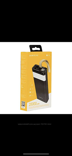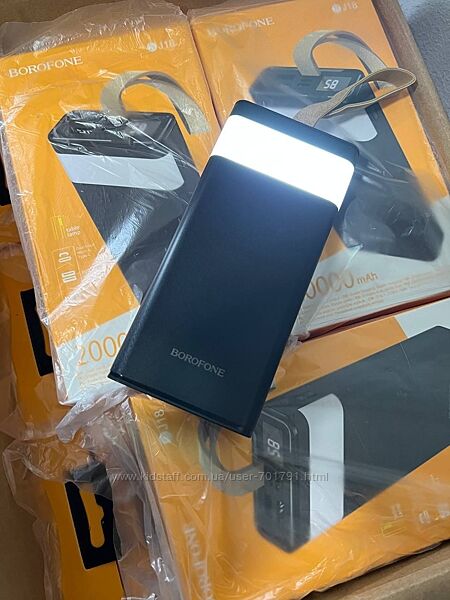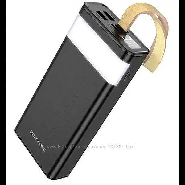 Портативна батарея Power Bank Borofone BJ18 Coolmy digital display 20000 mAh - функціональний зовнішній акумулятор з великою місткістю, який стане чудовим вибором для заряджання пристроїв вдома, на природі, під час тривалих ділових поїздок та подорожей. Аксесуар виділяється здатністю одночасно заряджати відразу кілька гаджетів і наявністю вбудованої світлодіодної лампи, що дозволяє використовувати його як ручний ліхтар або настільний світильник. Зручний ремінець забезпечить користувачеві комфорт під час транспортування повербанку, надасть можливість зафіксувати його на зап´ясті, закріпити на поясі чи рюкзаку.