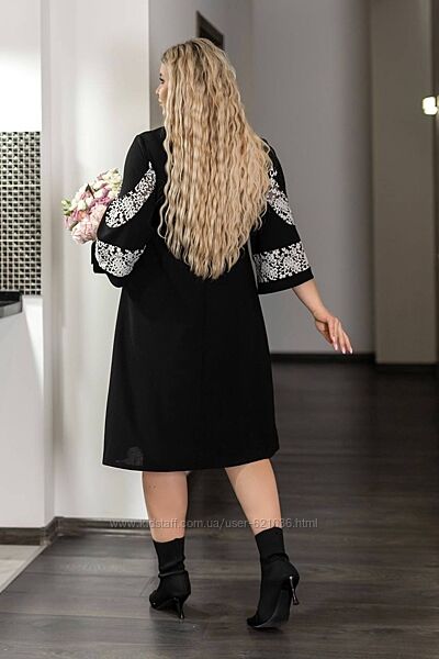 Тканина: модель вільного крою + креп дайвінг + вставки гіпюр розтяжність 2-3 см
