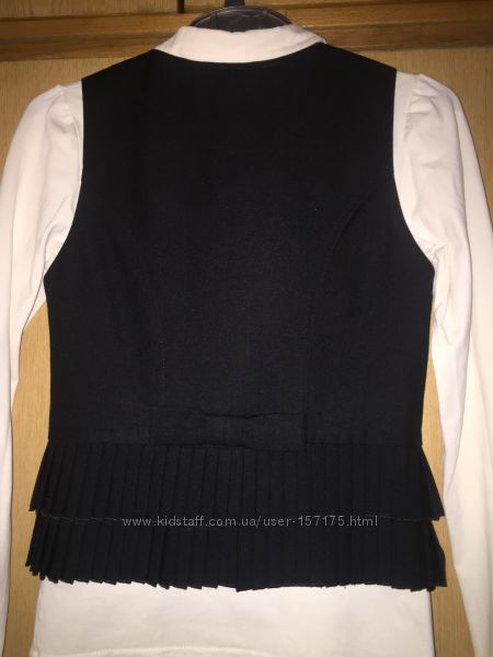 Продам школьную деловую жилетку BlackBarry Girl для девочки на рост 146-152 см. на 9-10 лет. Модель двухбортная на пуговицах, с низу мелкое плисе, на подкладке, не мнётся. На спинке маленький бантик. Очень стильная, деловая и комфортная.Замеры: