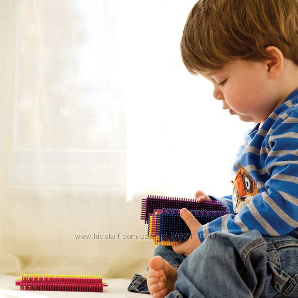 Оригинальные игольчатые конструкторы, которые помогут любознательному ребенку научиться соотносить величину и форму предметов, развить пространственное и логическое мышление, мелкую моторику рук, творческие способности, а также промассируют маленькие ручки малыша. Вращающиеся детали помогут привести в движение построенные фигуры. Рекомендовано для детей старше 2 лет.