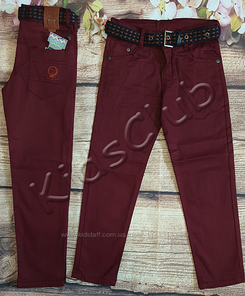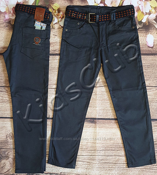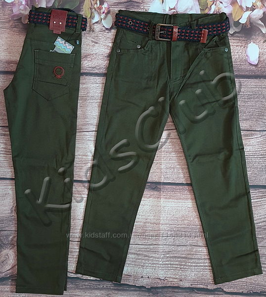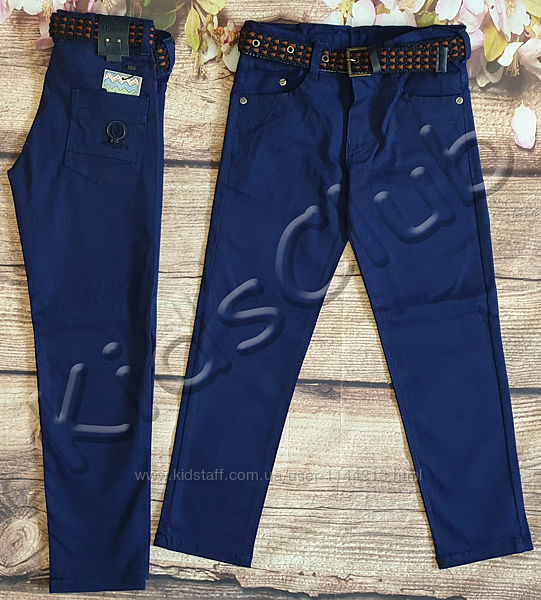 Штаны с поясом на мальчика, приблизительный рост от 98 до 158. Ткань плотная, стейчевая, состав 70% хлопок, 30% полиэстер. Внутри по талии есть утяжка. Расцветки яркие, насыщенные. Штаны немного зауженные к низу. Производитель: Турция.В зависимости от завоза пояс и вышивка на кармане может отличаться.