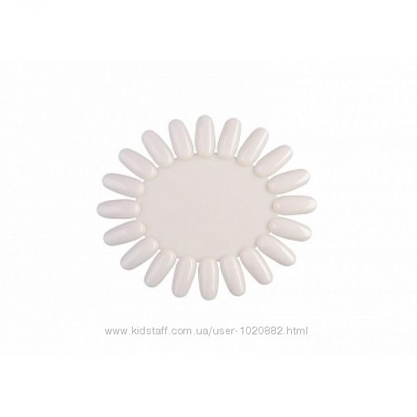 Овальная палитра-ромашка на 20 типс – один из самых востребованных мастерами ногтевой эстетики аксессуаров. Она предназначена для тестирования и демонстрации оттенков лаков и гель-лаков, а также других декоративных материалов, позволяет отработать различные варианты ногтевого дизайна. Палитра-ромашка – полезный и практичный аксессуар, который облегчает клиенту выбор оттенка гель-лака и обеспечивает наглядность. Палитры в виде ромашки в преобладающем большинстве случаев используются в магазинах косметической направленности, в салонах красоты или нейл-студиях.