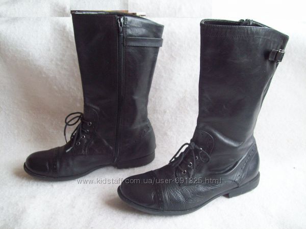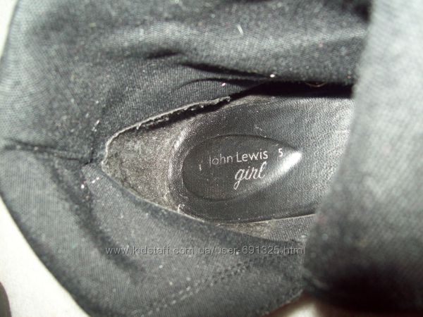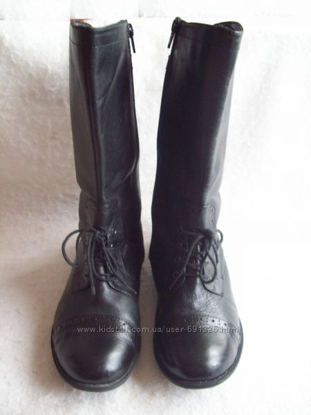 Пропоную чорні демісезонні черевики з натуральної шкіри від John Lewis girl. Усередині підкладка просто бавовняний текстиль, утеплювача немає. Уживані мало, акуратно, стан відмінний, блискавки і п´ятки цілі.Розмір вказаний 5. Довжина устілки всередині 25 см, висота чобота від підлоги 30 см, ширина щиколотки 13 см, ширина верху 17 см, гумки немає.