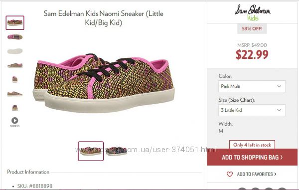 Подробное описание: Новые мокасины Sam Edelman Kids Naomi Sneaker оригинал размер 36 стелька 24