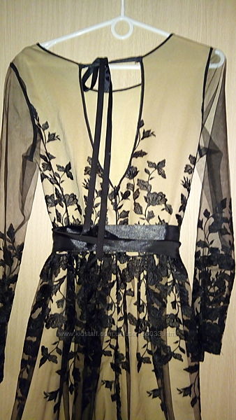 Платье коктейльное расшитое цветами с рукавами из сетки. Юбка-колокол, вырез горловины - лодочка, длина до колена(возможно, чуть ниже колена, в зависимости от Вашего роста). Очень дорогая и красивая итальянская ткань. Красивая модель.Новое платье.
