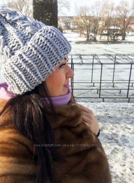 Подробное описание: в наличии комплект двойка обьемная вязаная шапка бини Колосок Снуд Серый