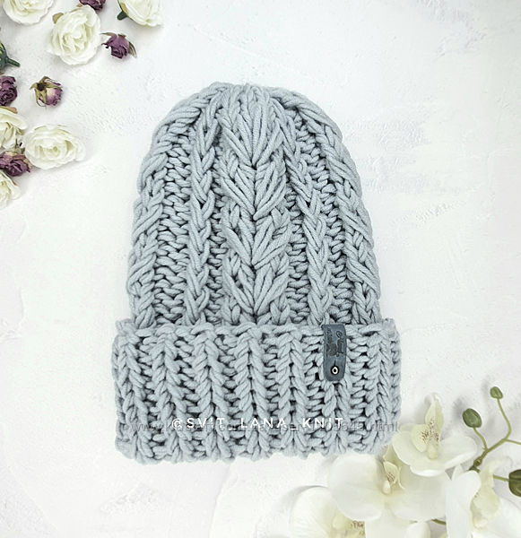 связана вкруговую без шва, поэтому высоту отворота и макушки можно регулировать по своему желанию