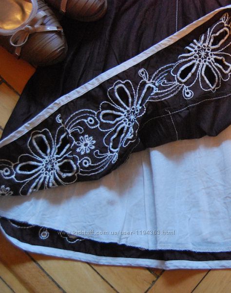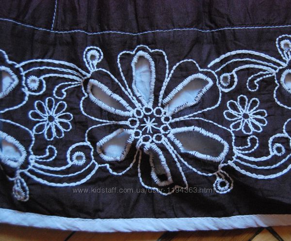 Пышная хлопковая юбка с перфорированными цветами. Пояс на резинке. Красиво смотрется под туфельки и под высокие сапожки. В отличном состоянии. Нюансов и дефектов нет.Полуобхват талии 34 см. Полуобхват бедер 49 см + складки. Длина 54 см. Состав: 100% хлопок.