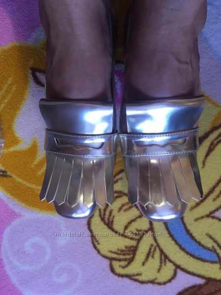 Подробное описание: Стильные туфли золотого цвета с бахромой писк сезона