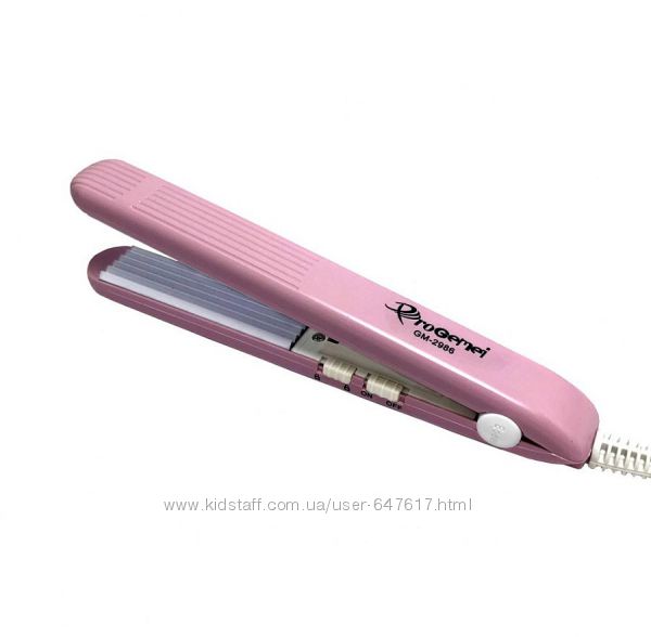 Утюжок гофре для волос ProGemei Gm-2986 (turquoise, pink , purple)Мини утюжок сделает Вашу прическу оригинальной и модной, даже если Вы на отдыхе, и благодаря своей компактности его можно взять с собой в путешествие или в командировку, и он не займет много места. При этом благодаря невероятно гладкой поверхности - бережно взаимодействует с волосами и равномерно распределяет тепло, сохраняя их силы и красоту. Простота и легкость позволяет использовать щипцы на всех типах волос, от самых тонких и слабых до толстых, не повреждая структуру волос. Утюжок имеет стильный инновационный дизайн и прост в использовании, подойдет как для салонного, так и домашнего использования.