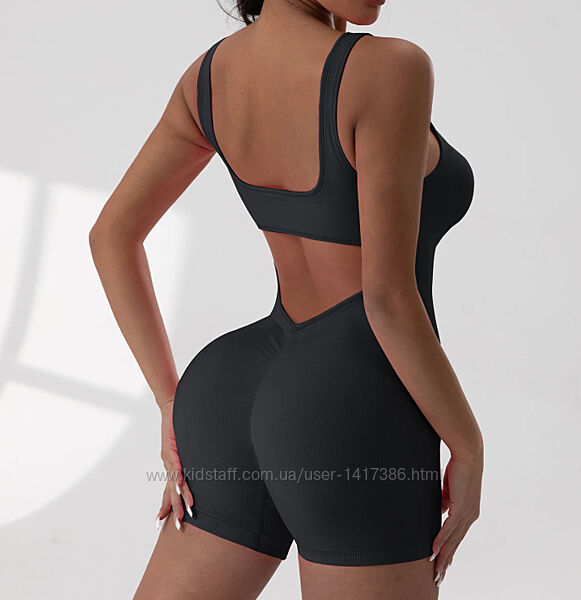 Жіночий однотонний сексуальний комбінезон без рукавів для йоги та тренажерного залу.Гарний акцент на сідницях.