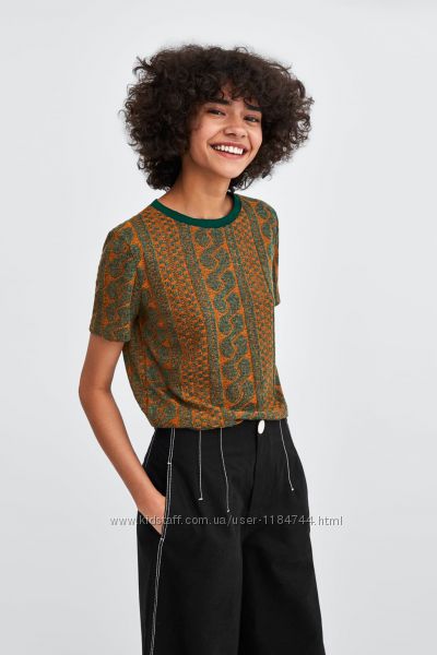 Тренд сезона!! Жаккардовые женские футболки от Zara Испания. Яркие насыщенные краски!! Идеальное сочетание цветов!! Мягкая приятная ткань!! Серые с серебренной нитью. Отличное качество!!Размеры и модели в наличии: