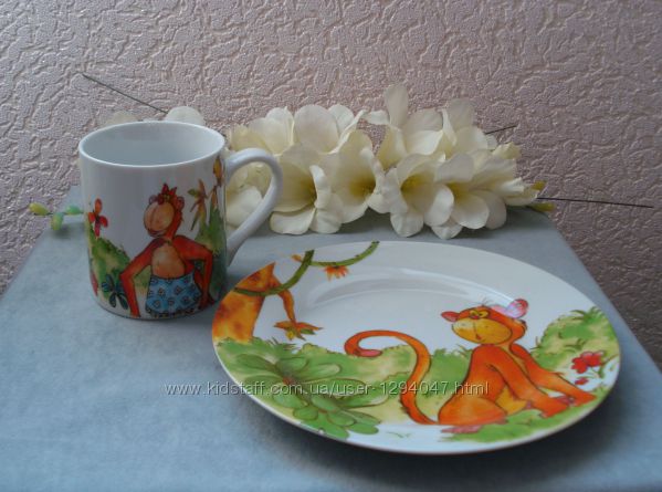 Красивые наборы посуды с семьей попугайчиков (цена 240 грн.) и с мартышками (135 грн.).Набор с попугайчиками продается в красивой коробочке.