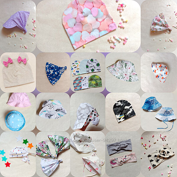 Шапочки и наборчики ручной работы.