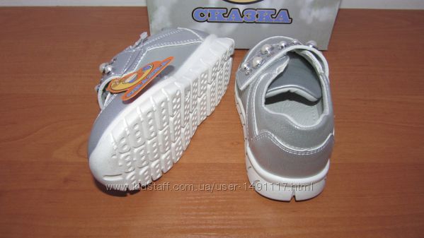 Распродажа!Оригинальные стильные кроссовки от фирмы Сказка для девочек серебряного цвета. На липучке. Жесткий задник. Удобные, легкие. Стразики и бусинки на липучке прочно закреплены. Продаются в индивидуальной фирменной коробочке. Подходят на любой подъем и полноту ножки. Качество выше цены.