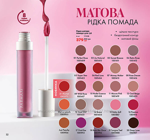 Подробное описание: Жидкая стойкая матовая помада Matte Liquid Farmasi, фармаси набор, дисконт