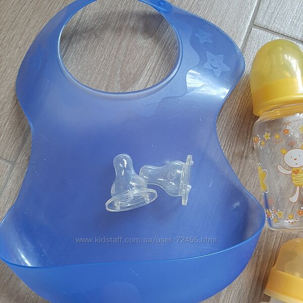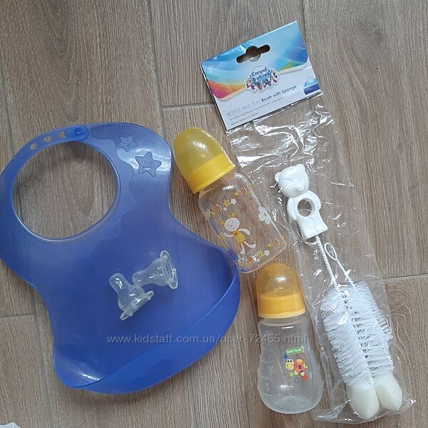 Подробное описание: Бутылочки, ершики, нагрудник, соски