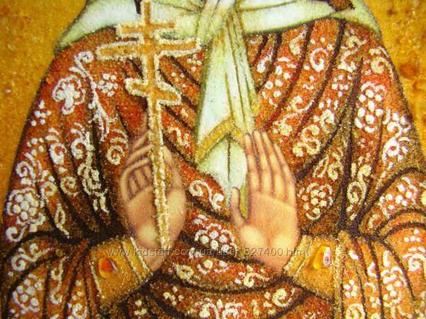 Каждый миллиметр иконы засыпан янтарной крошкой. Также использованы более крупные камешки янтаря. Абсолютно новая.