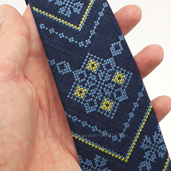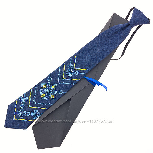 Синя підліткова вишита краватка №965 розроблена для підлітків віком від 9 років. Одягається за допомогою резинки. Краватка виконана у вигляді самов´яза для солідного вигляду.Дана вишита підліткова краватка виготовлена із костюмної тканини бордового кольору. Довжина виробу з вузлом близько 35см, ширина в найширшому місці 5,5 см.