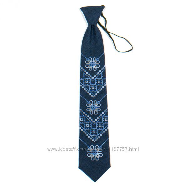 Підліткова краватка з вишивкою №791 розроблена для підлітків віком від 9 років. Одягається за допомогою резинки. Краватка виконана у вигляді самов´яза для солідного вигляду. Дана вишита підліткова краватка виготовлена із костюмної тканини темно-синього кольору. Довжина виробу з вузлом близько 35см, ширина в найширшому місці 5,5 см.Усі вишиті краватки нашого виробництва – запаковані в фірмову ексклюзивну упаковку з чорного дизайнерського картону, що виграшно доповнює краватку у якості подарунку!