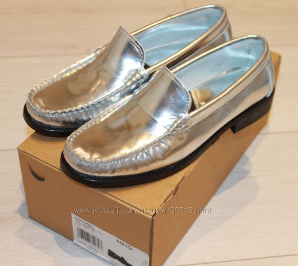 Подробное описание: Кожаные серебряные туфли лоферы Mango - 37, 38, 40