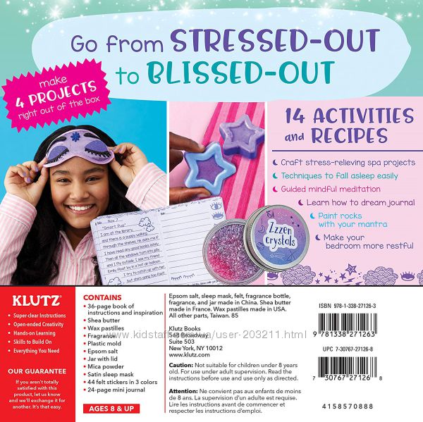 Только оригинальный товар!Творческий набор Сладкие сны Klutz Sweet Dreams DIY Kit. Очень красивый набор - все для релаксации перед сном. Материалы, полиграфия очень качественные. Подробные инструкции к каждому изделию. На английском языке. Отлично подойдет для особенного времяпровождения мамы с дочкой.