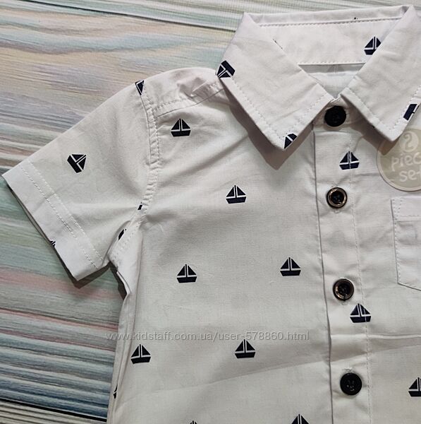 Ошатний комплект із сорочки та шорт для хлопчика від англійського бренду Pep&Co у розмірі 9-12 міс (с3).На шортиках кишеньки з боків.