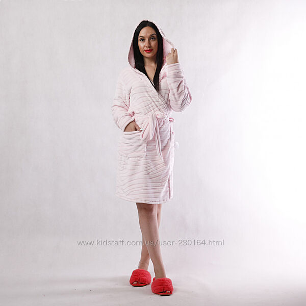 Подробное описание: Женский махровый халат на запах с капюшоном