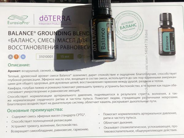Подробное описание: Успокаивающая смесь эфирных масел Баланс Balance Grounding Blend doTERRA