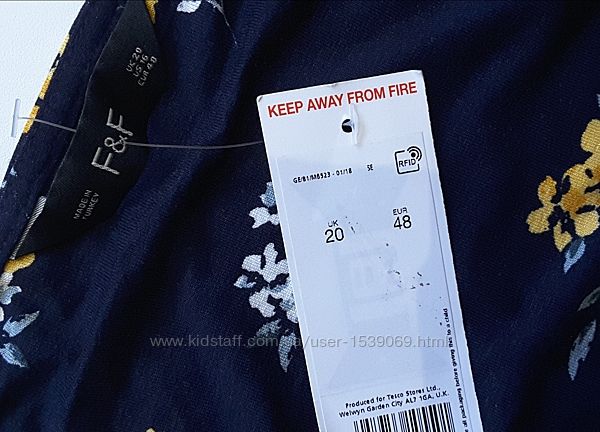 Літня сукня р. UK 20 з 96% віскози, 4% еластану британського бренду F&F урізноманітнить Ваш гардероб!Позитивні якості віскози: хороша проникність для молекул повітря дозволяє тілу «дихати» під покривом тканини,
