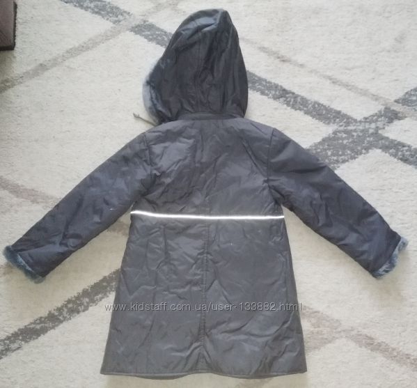 Новая. Пролет с размером и дочка очень худая, а курточка как на меня на среднюю или плотнее девочку.Длина -65см, ПОГ - 40см, рукав -46см, от шеи рукав -56см, по плечах 35см.