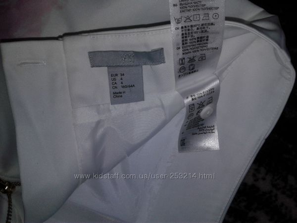 Подробное описание: Юбка карандаш белая H&M р. 34 XS юбочка цветы розы летняя