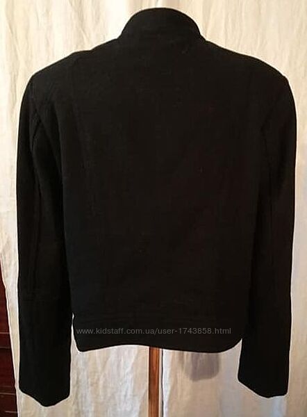 Демисезонная куртка H&M р.44-46, цвет черный, на подкладке, застежка-молния металлическая, два наружных кармана с застежкой-молнией, кнопки внизу и на воротнике-стойке. Состав 57% шерсть, 28% полиэстер 6% акрил 6% вискоза 4% полиамид.В отличном состоянии, без дефектов. Все молнии работают, кнопки на месте, подкладка и швы целые.