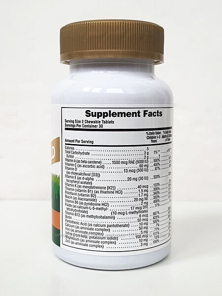 Крім збалансованого повного комплексу вітамінів та мінералів, містить пробіотики, ферменти та сертифіковану органічну суміш цільних харчових продуктів Gold (органічний екстракт ацероли, яблуко, паросток броколі, цвітна капуста паросток, капуста, капуста грибна , гриб міцелію, петрушка, сік буряків, морквяний сік, спіруліна, гриб рейші, гриб шиитаке міцелій, шпинат, томатний сік, чорниця, хлорела тощо).
