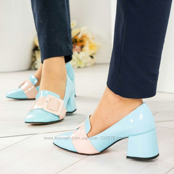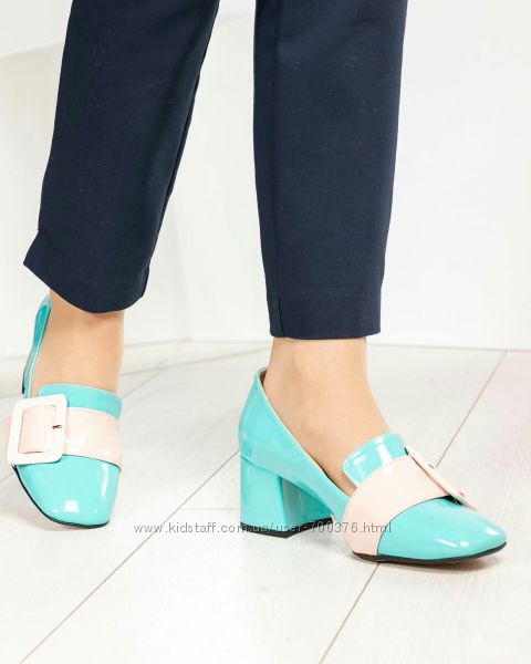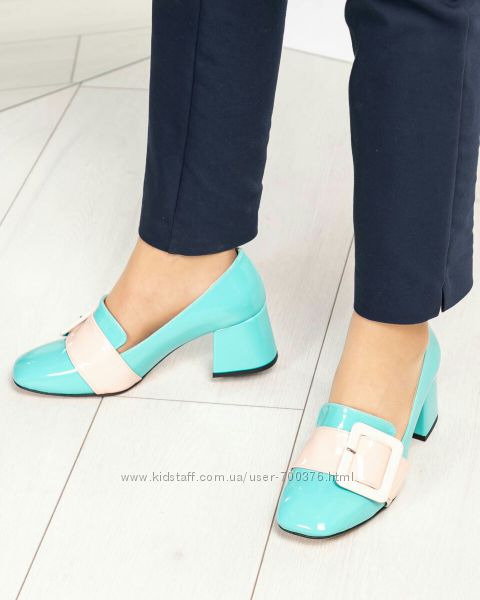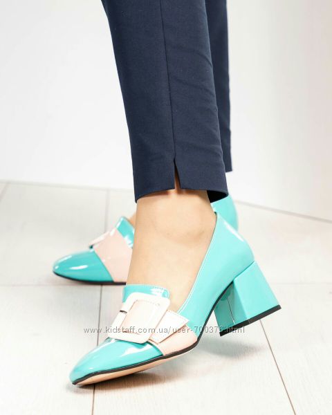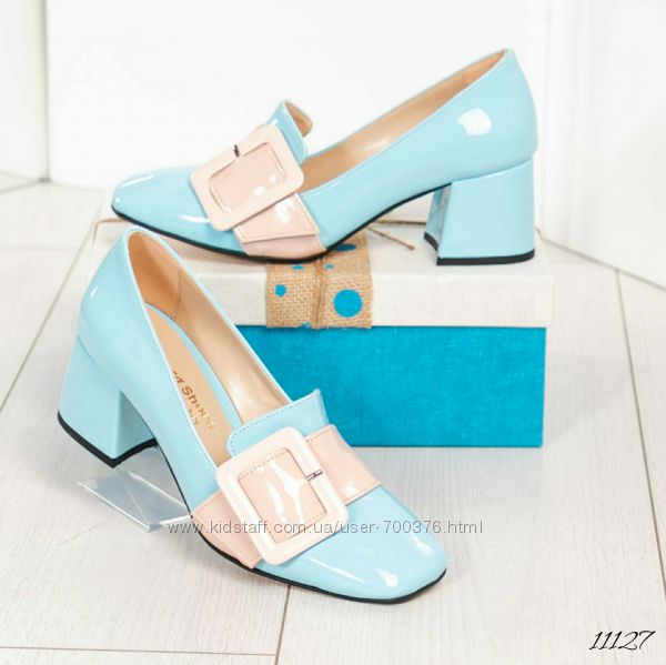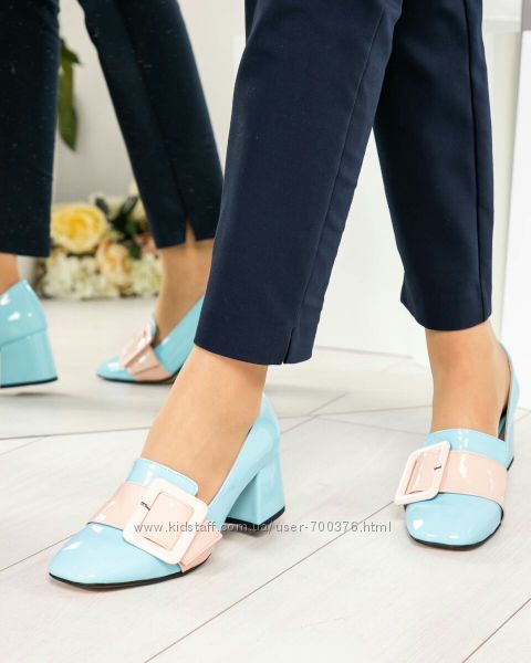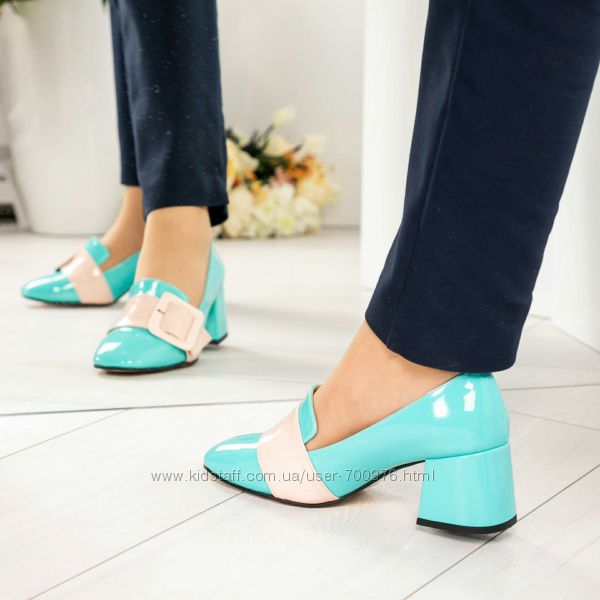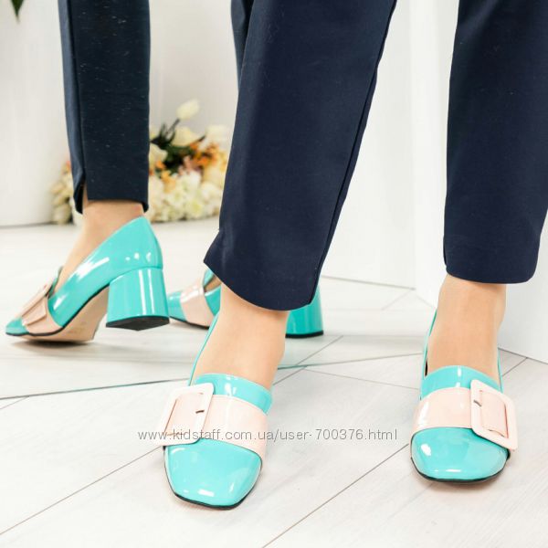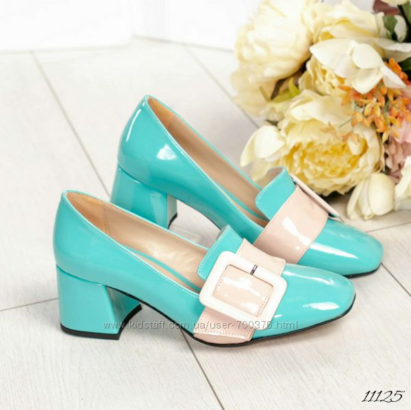 Туфли лаковые, с пряжкой, бирюза и голубые