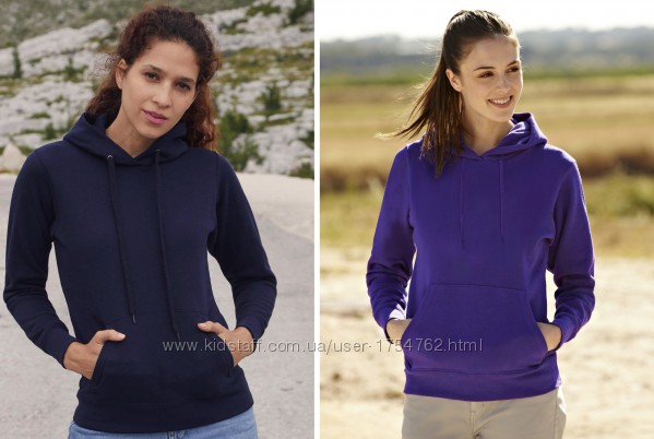 Подробное описание: Женская Толстовка Худи с начёсом и капюшоном FRUIT OF THE LOOM