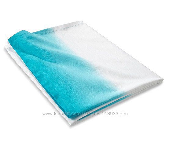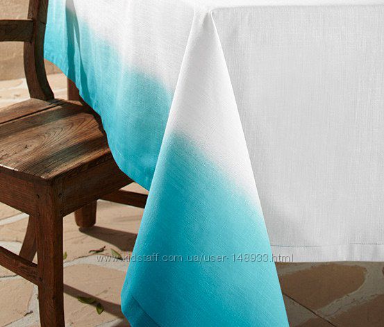 Перехід кольору від білого до бірюзового краю доходить до середини столу, тому він дає особливий вигляд цієї тканини. Все на обідньому столі виглядає чудово!