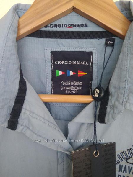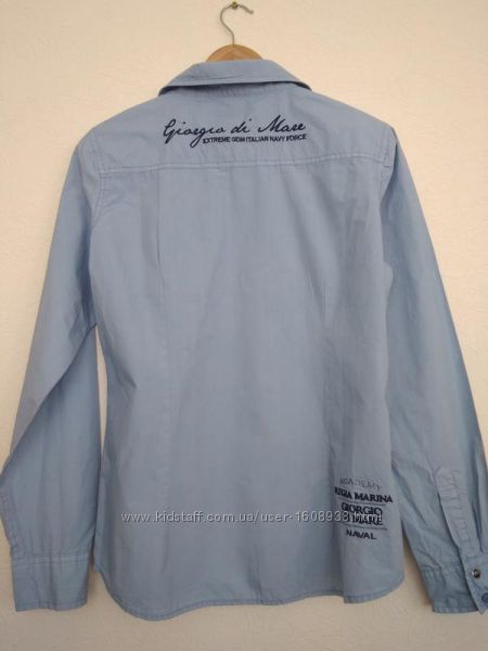 Отличная рубашка спортивного стиля от итальянского бренда Giorgio di Mare. Изделия от этого бренда пользуются большой популярностью во всем мире. Производитель использует только высококачественные материалы ,уделяя особенное внимание деталям. Рубашка приталенного кроя, оттложной воротник; планка и манжеты на пуговицах и кнопках, элементы шитья с символикой бренда. Размер L. Замеры: высота по спине 69 см, высота рукава от плеча с манжетом 65 см, ширина в плечах по спине 43 см, полуобхват под руками 51 см, полуобхват талия 47 см, полуобхват по низу 52 см.