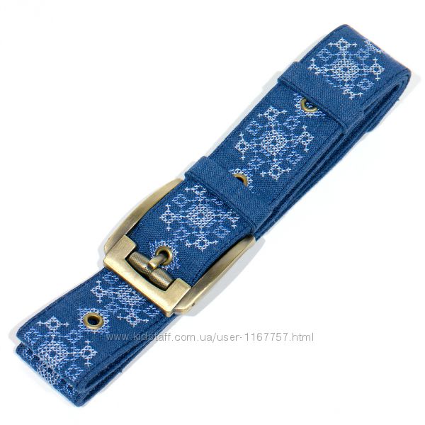 Вишитий пояс №861 виготовлений із натурального льону синього кольору. Пояс значно ущільнений для додаткової міцності і підтримки форми виробу. Вишитий пояс декорований українською вишивкою хрестиком по всій довжині та має металеву пряжку.Розмір виробу 105 х 4см.