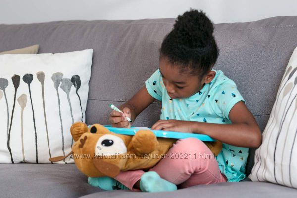 Сделайте поездки веселыми! Этот милый друг непременно обрадует малыша! Удобно ложится на коленки, с функциональным кармашком сзади для фломастеров и мелочей, с 6 фломастерами, которые легко отмываются водой. Собачка легко крепится к столику резинками-ремешками, поэтому легко можно его открепить и играть с ним как с мягкой игрушкой. На столике можно рисовать, заниматься разным творчеством. Собачку можно стирать.