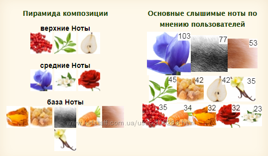 средние ноты: Ирис, Жасмин и Роза;