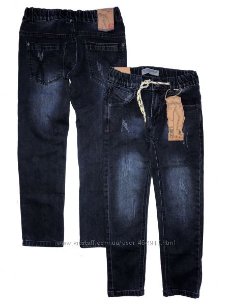 Стильні джинси для хлопчиківШтанини до низу звужені, пояс на гумці зі шнурком, м´які.