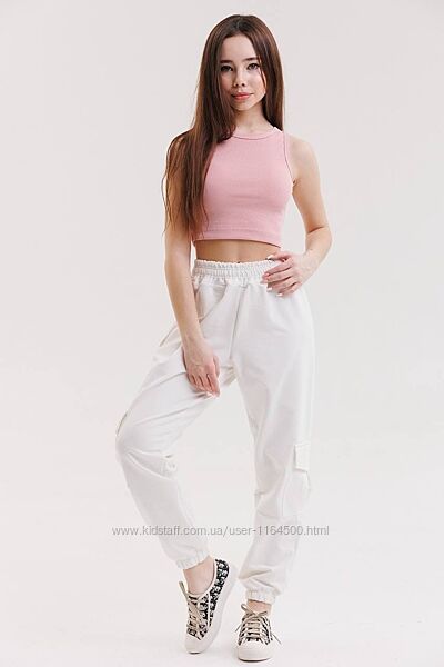 Штани джогери типу карго з боковими кишенями для дівчинки. Тканина турецька двонитка якість пін´є. Джогери чудово підійдуть на весну. У поясі та низ штанки мають резинку. Колір має молочний відтінок.Заміри