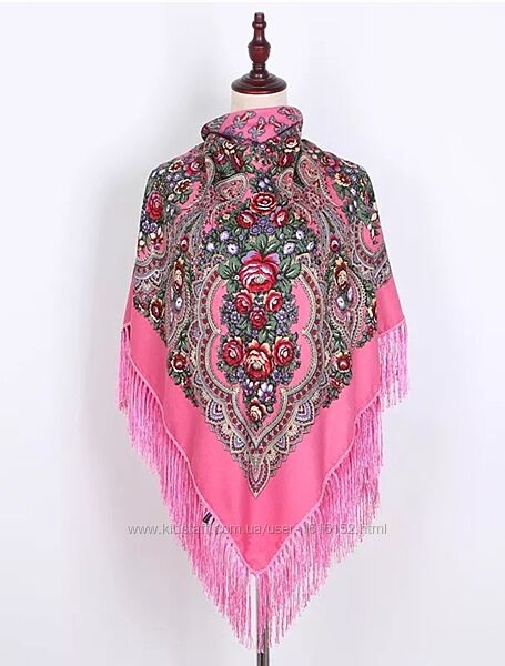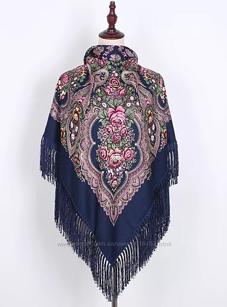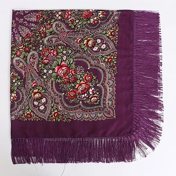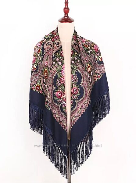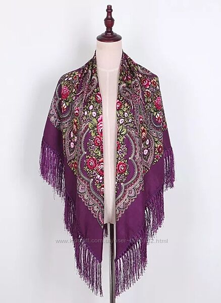 Платок в национальном стиле с красивым цветочным узором.Размер: 115х115 см + бахрома с каждой стороны по 13 см.