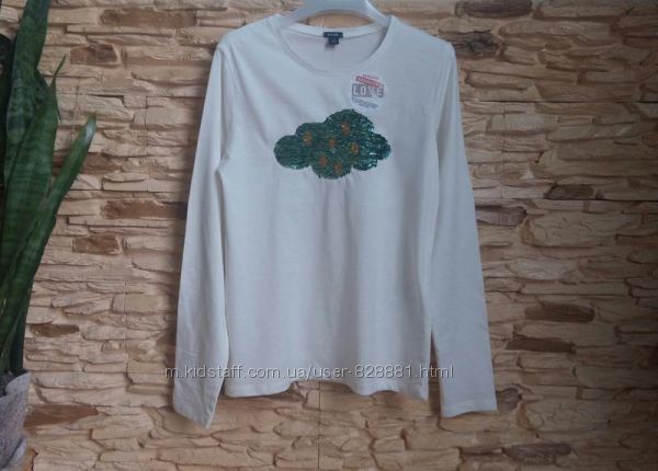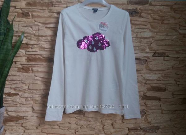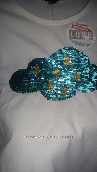 Симпатичный белый реглан с пайетками-перевертышами.