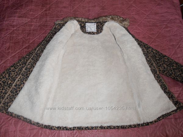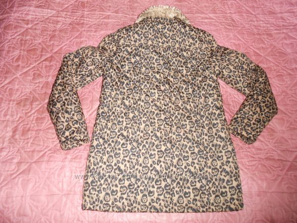 2. Куртка леопардовая: длина рукава - 58,5 см., плечико - 9,5 см., ширина под рукавчиками - 43 см., длина от плечика - 66 см. Застегивается на змейку и кнопочки, есть меховой воротничок, внутри - меховой утеплитель и синтепончик, впереди два кармашка. Материал: 100% полиэстер. Цена: 250 грн.