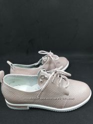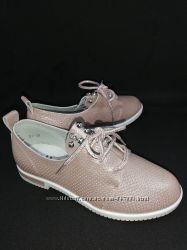Стильные туфли для девочек. Отличный вариант для школы, особенно тем, кто не любит классику!К ачественный кожзам с напылением и перфорацией. Материал подошвы: резина.Высота каблука: 2см.