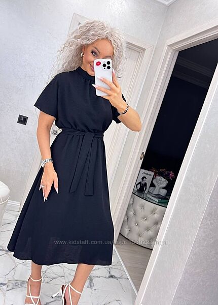 Підкресліть свою жіночність та витонченість у стильній літній сукні за коліно з елегантною горловиною-стійкою та зручним поясом у комплекті. Ідеально підходить для повсякденного носіння, прогулянок, офісу або святкових подій у спекотний сезон.